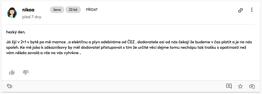 - Klikněte na tlačítko s ikonou přidání citace, které se objevilo na pravé straně příspěvku. Po kliknutí se vytvoří citace.
